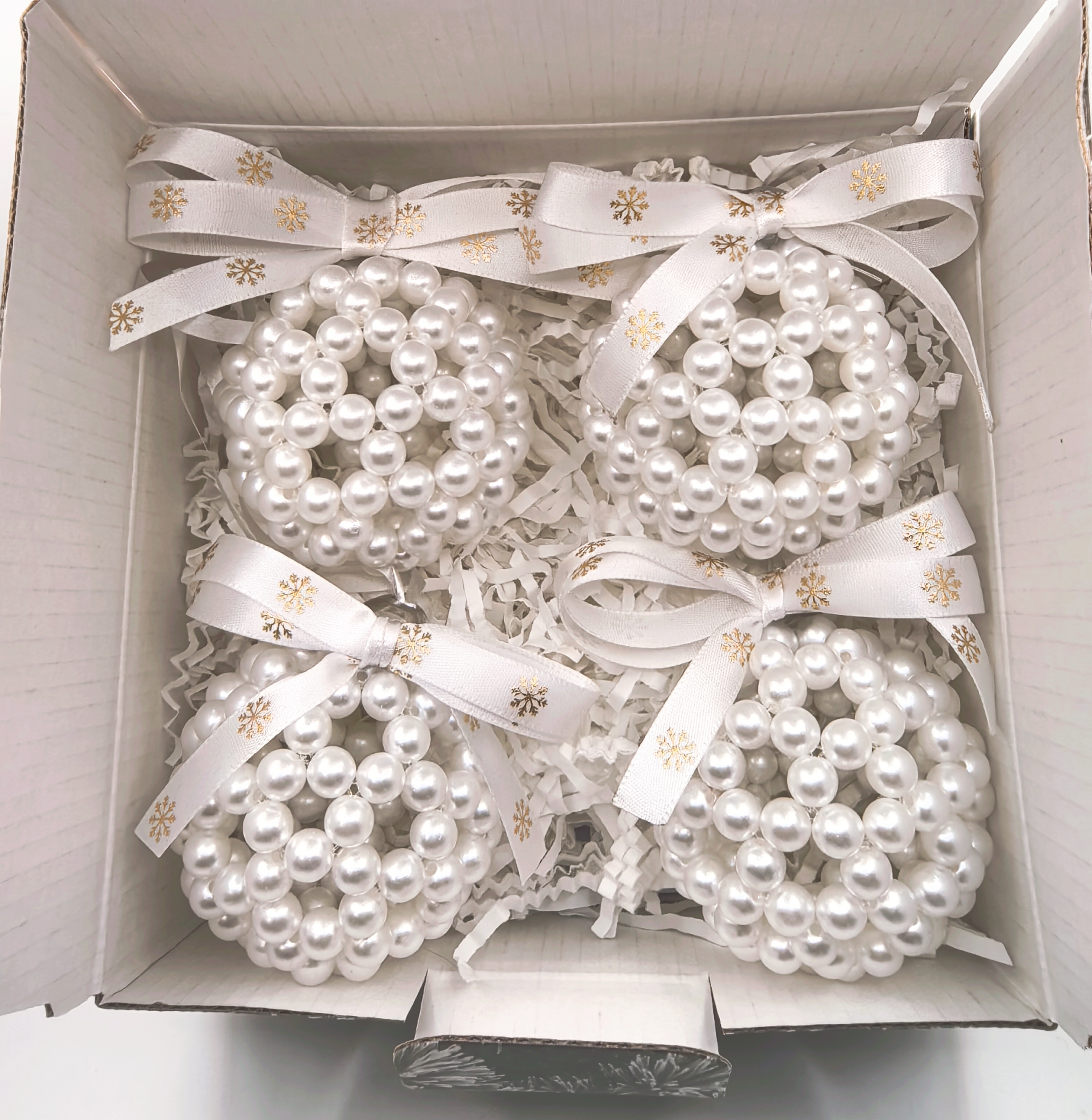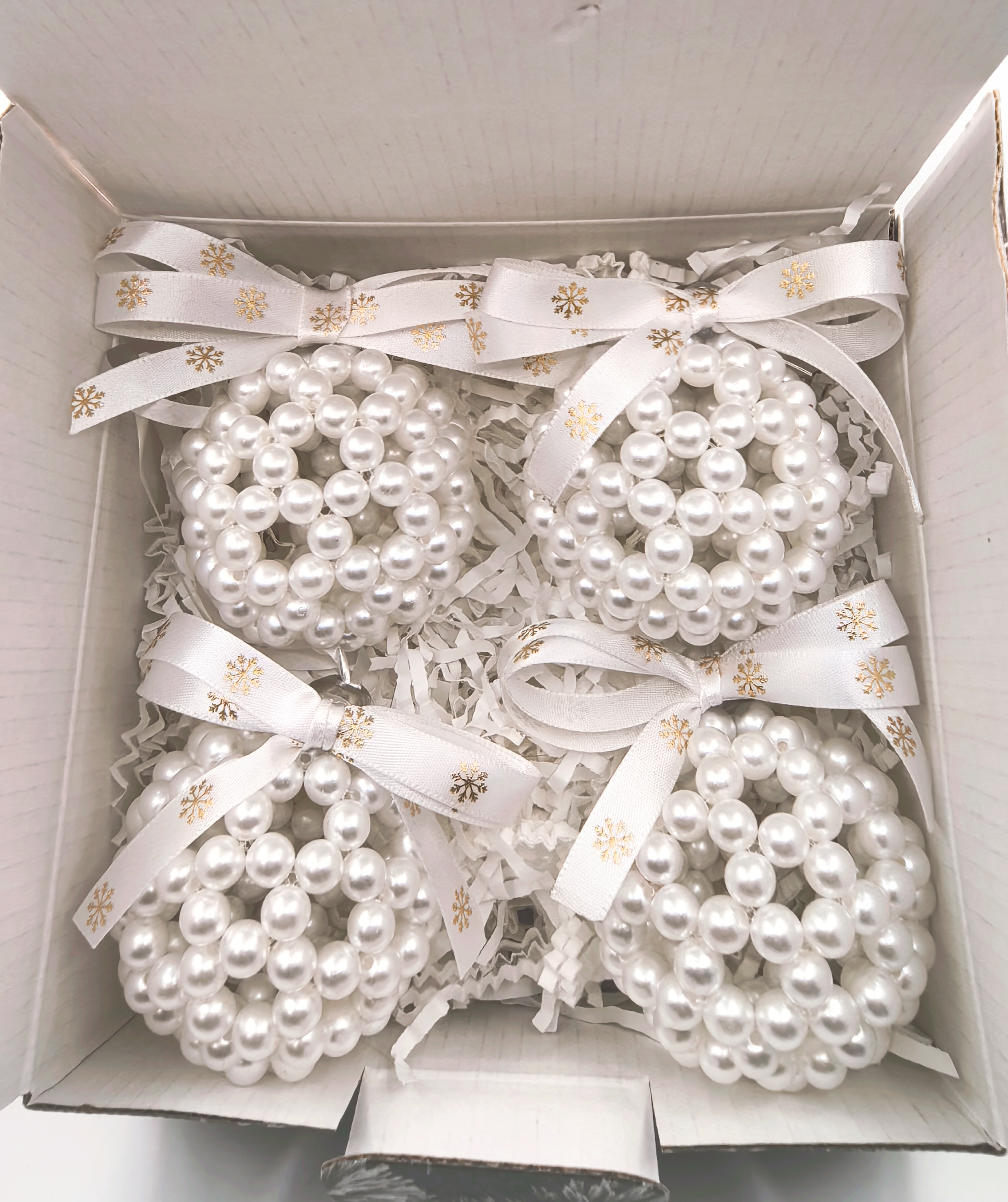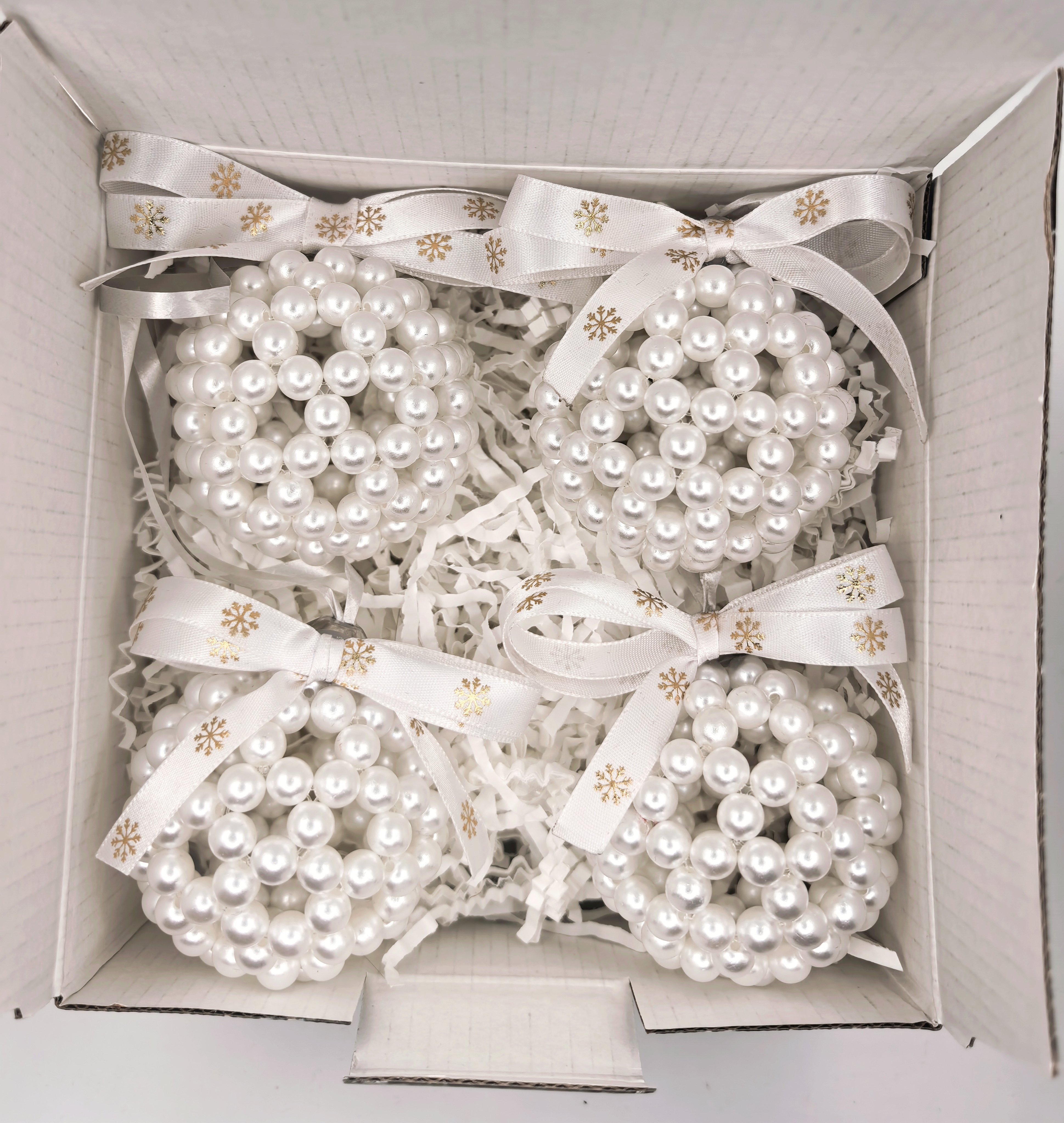 Диаметр 6см. Каждая игрушка украшена изящным бантиком и имеет удобный подвес для крепления на ёлку. Игрушки упакованы в красивую подарочную коробку, что делает их идеальным вариантом для подарка.