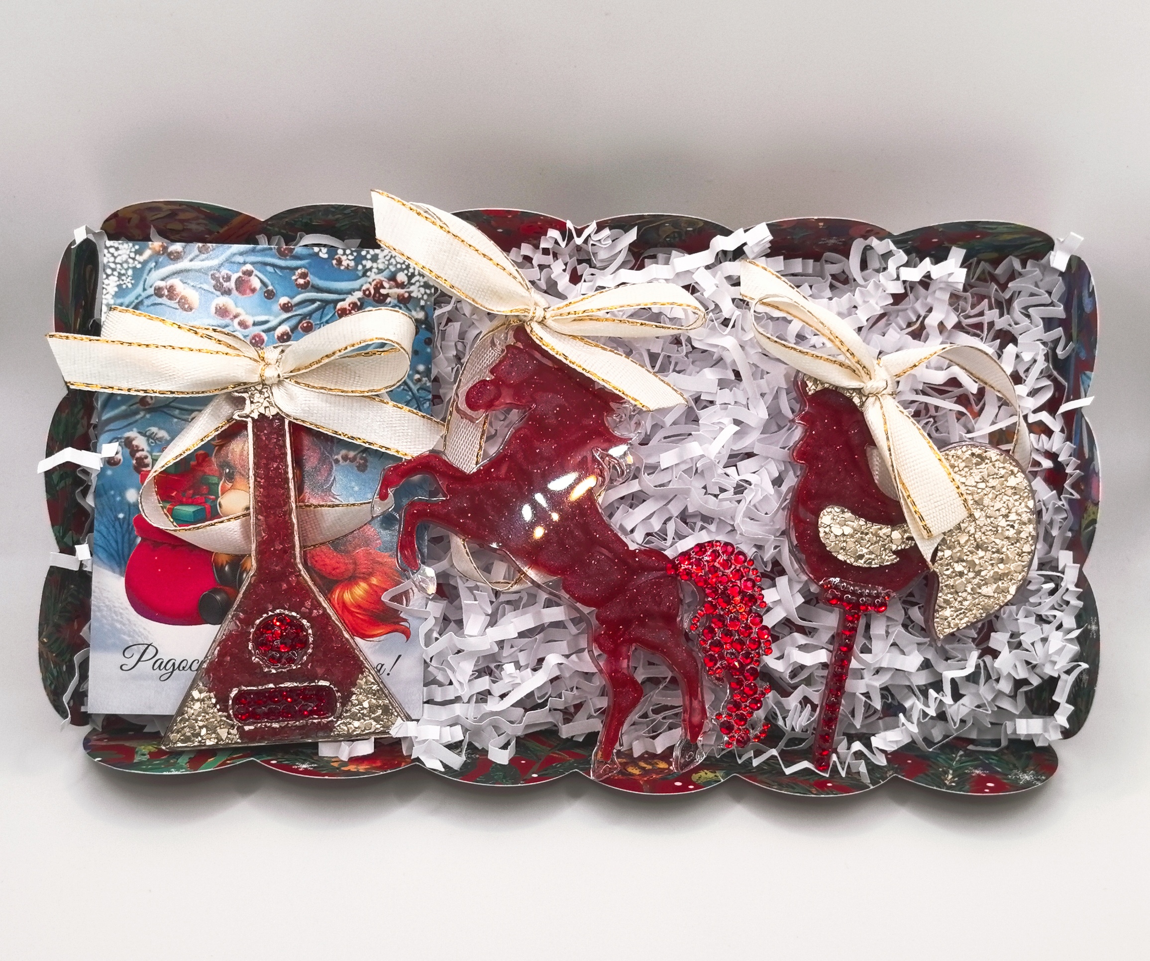 Создайте волшебство на вашей ёлке с нашими эксклюзивными ёлочными игрушками из эпоксидной смолы! Каждая игрушка – это настоящее произведение искусства, мерцающее тысячами искр благодаря изысканному глиттеру. Жидкая поталь добавляет благородный блеск, а сверкающие стразы притягивают взгляд, словно звёзды на ночном небе.