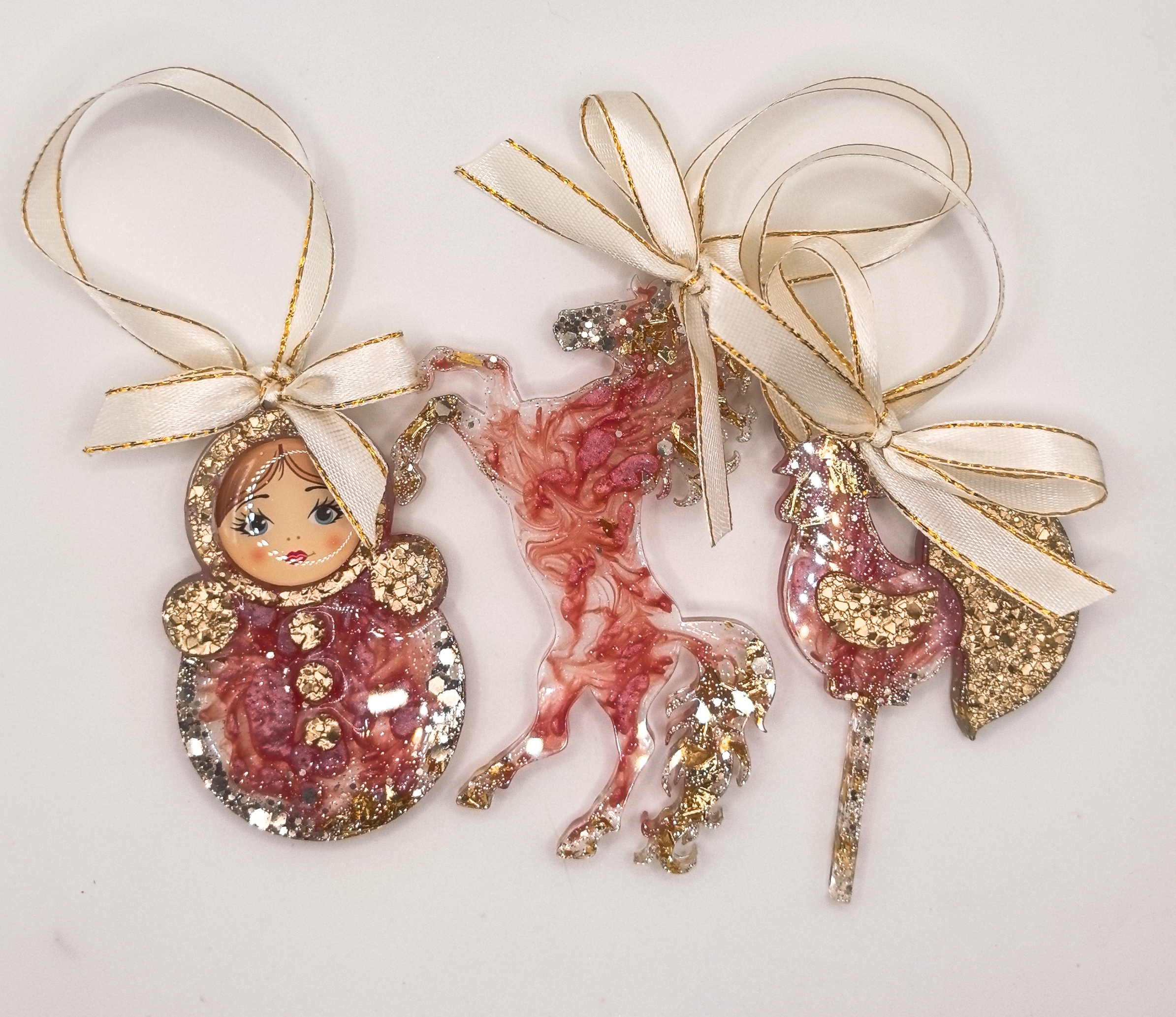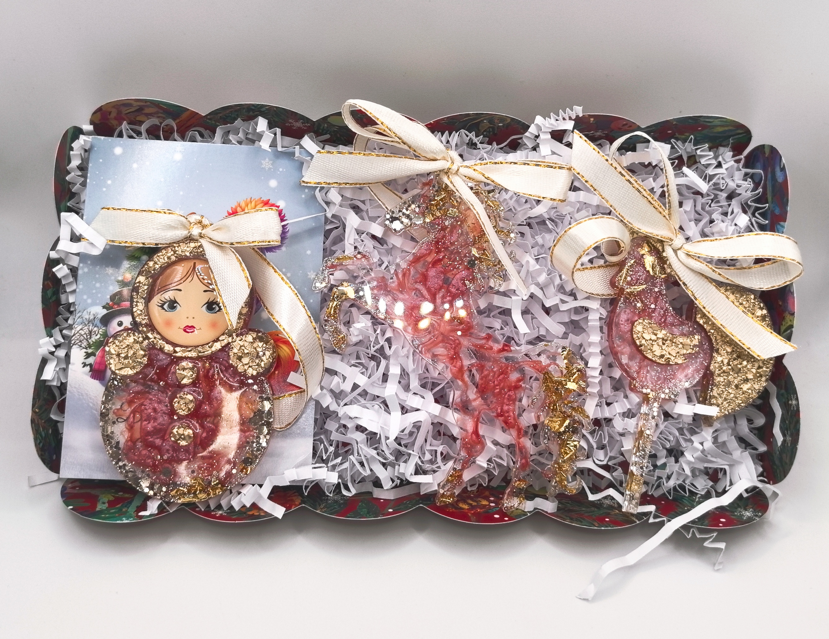 Создайте волшебство на вашей ёлке с нашими эксклюзивными ёлочными игрушками из эпоксидной смолы! Каждая игрушка – это настоящее произведение искусства, мерцающее тысячами искр благодаря изысканному глиттеру. Жидкая поталь добавляет благородный блеск, а сверкающие стразы притягивают взгляд, словно звёзды на ночном небе.